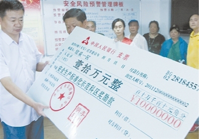 今年以来,安徽台湾a片 杨庄矿加大了对安全生产标准化区队的奖励力度。截至8月12日,该矿已实现连续安全生产1420天。图为杨庄矿将7月安全生产标准化示范科区10万元奖金和贺信送到综采一区。