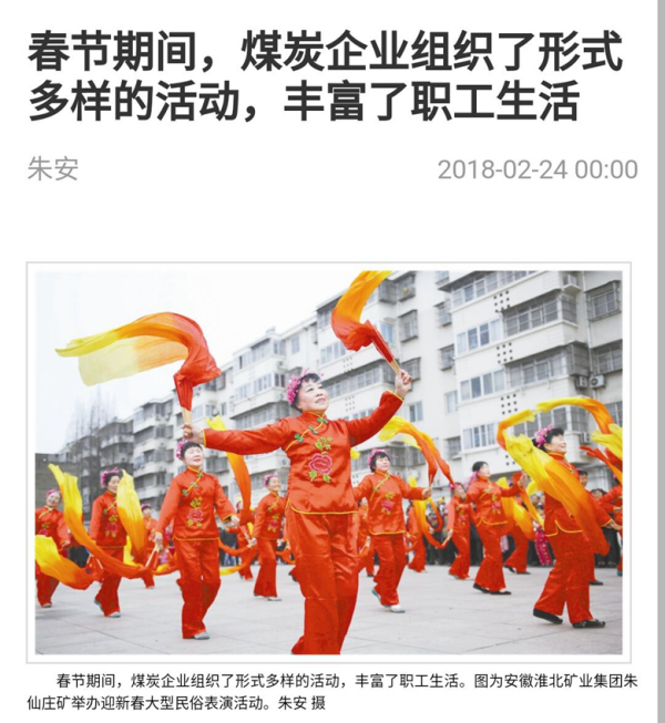 《中国煤炭报》1版:朱仙庄矿多种形式迎新春