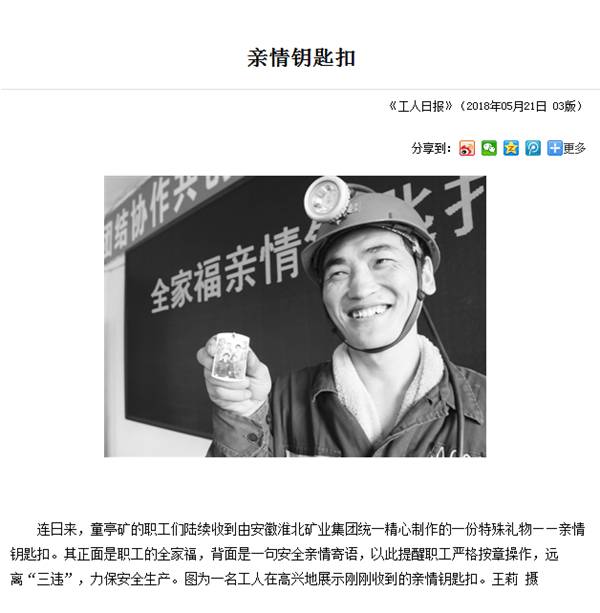 《工人日报》3版:淮北矿业工会为一线职工制作亲情钥匙扣