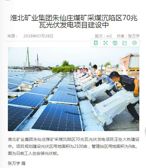 《中国煤炭报》:采煤沉陷区70兆瓦光伏发电项目建设中