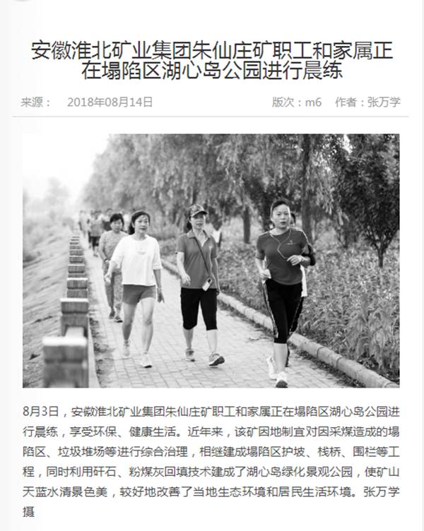 《中国煤炭报》:朱仙庄矿湖心岛成为职工家属晨练好去处