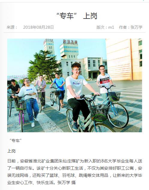 《中国煤炭报》:朱仙庄矿大学生“专车”上岗