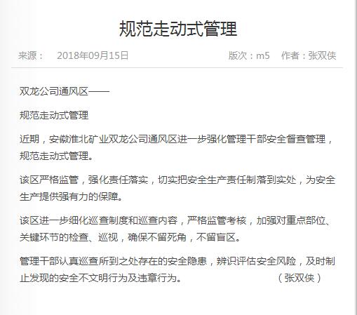 《中国煤炭报》:双龙公司通风区规范走动式管理