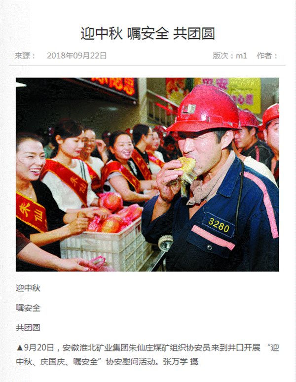 《中国煤炭报》:朱仙庄矿开展“迎中秋 嘱安全 共团圆”活动
