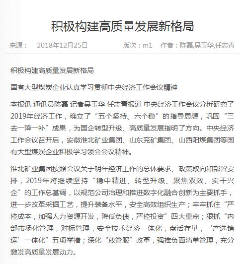 来源:《中国煤炭报》 2018年12月25日 1版