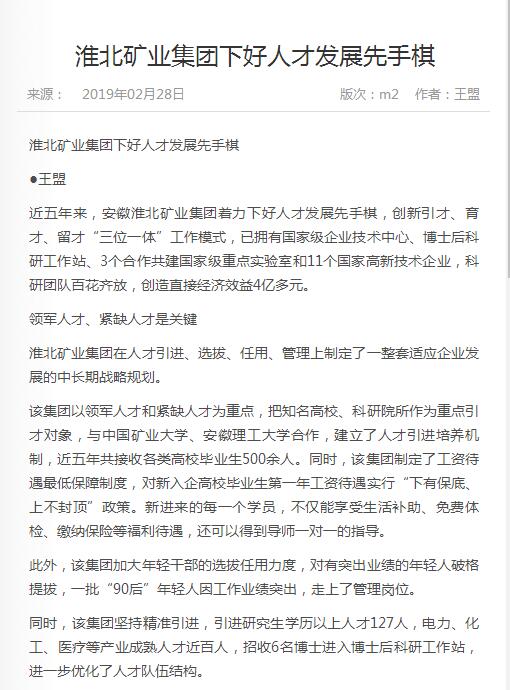 《中国煤炭报》2版头条:台湾a片 下好人才发展先手棋
