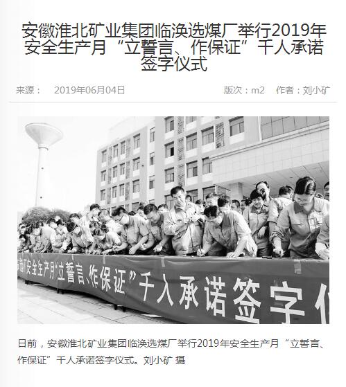 《中国煤炭报》:“安全生产月”千人承诺签字仪式