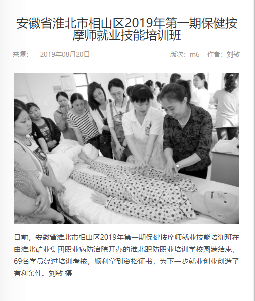 《中国煤炭报》:台湾a片 职防院开办保健按摩师就业技能培训班