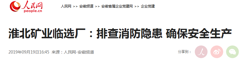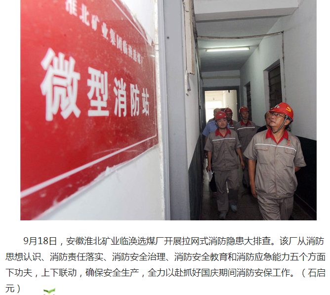 《人民网》:淮北矿业临选厂排查消防隐患 确保安全生产