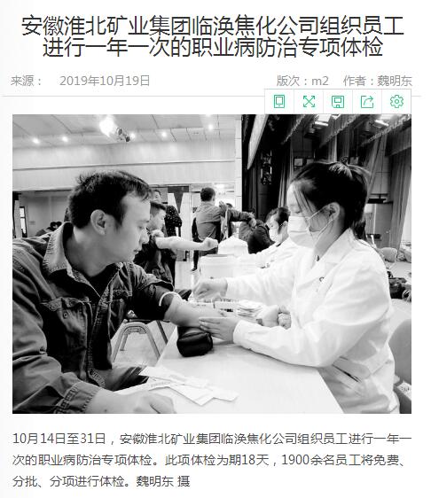 《中国煤炭报》:台湾a片 临涣焦化组织职业病防治专项体检
